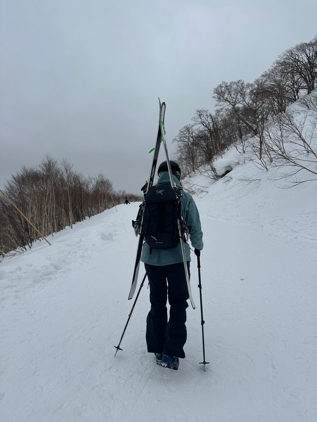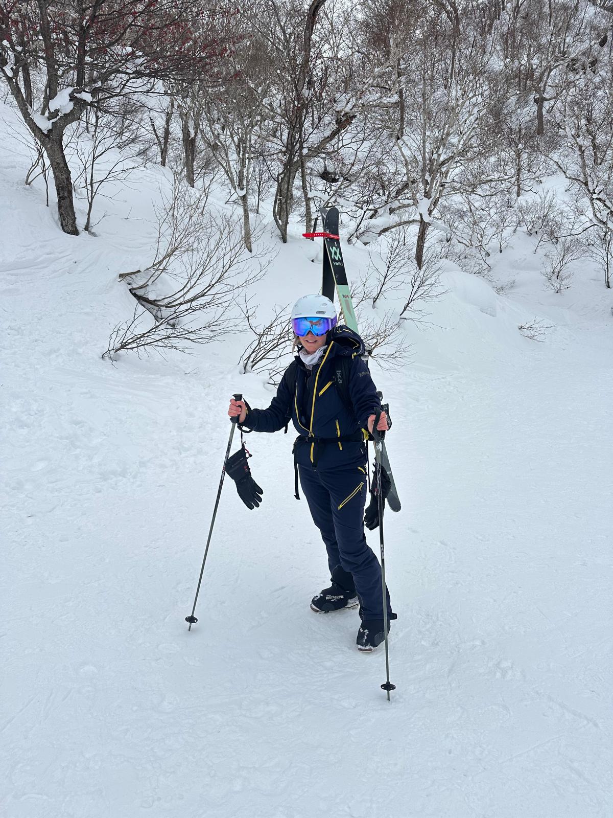 On day one in Niseko, Sharlene spotted a nearby mountain and immediately thought, I’m not hiking that. But by day three, with Chess by her side, she was halfway up it , skis strapped to her pack, climbing with confidence.